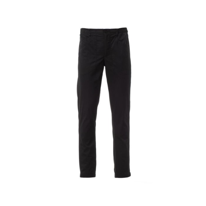 Descrizione: Pantalone uomo, multifunzione, realizzato in ripstop di cotone e Lycra® T400®, con ottime proprietà elastiche e traspiranti, con inserti laterali in confortevole tessuto a rete per tutta la lunghezza della gamba esterna. Chiusura con zip e bottone, passanti in vita, elastico para sudore nell’interno vita. Frontalmente presenta due tasche sagomate e un taschino porta monete. Sul retro, una tasca a toppa sagomata. Fondo gamba elastico. Travette di rinforzo in tinta.