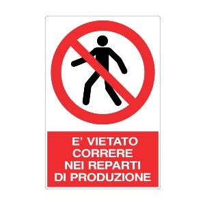CARTELLO VIETATO CORRERE NEI REPARTI DI PRODUZIONE ART.1369/B