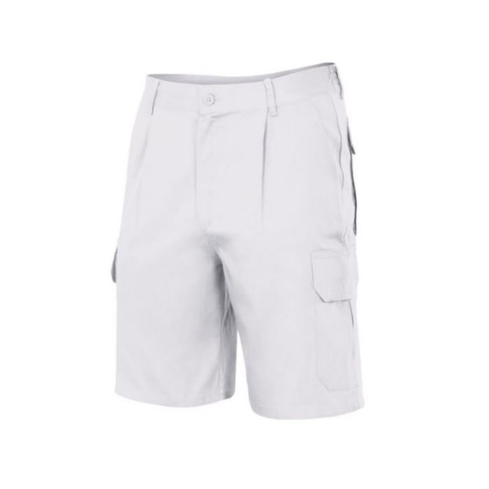 Descrizione: Bermuda da lavoro con: etichetta rimovibile, chiusura centrale con zip e bottone, cinturino elastico, impuntura posteriore di sicurezza e pinces.