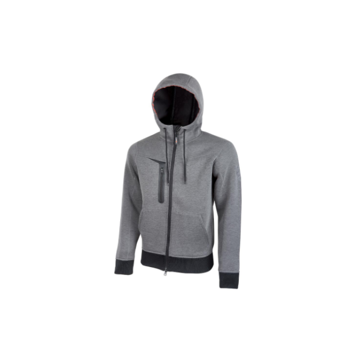 Descrizione: Felpa full-zip in tessuto jersey scuba elasticizzato. il capo è composto da: cappuccio con fettuccia reflex sul bordo, due tasche frontali, tasca multimediale sul petto lato destro con uscita per auricolare tecnologia Free Sound. Inoltre presenta la zip centrale con doppio cursore e polsini e cintura in resistente costina elasticizzata. Fori di aerazione posizionati sotto le ascelle per garantire un miglior comfort e logo U-Power “testa di leone” ricamato tono su tono su braccio sinistro. La felpa full-zip è adatta a diversi ambienti di lavoro come: Carpentieri, Elettricisti, Idraulici, Installatori, Meccanici, Imprese di pulizia.