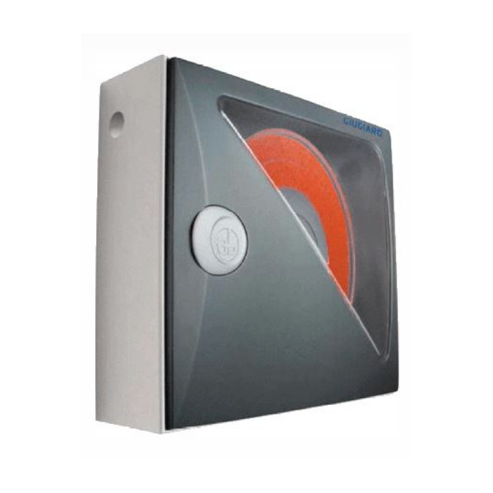 Descrizione : Naspo a parete con cassetta a bordi arrotondati “Giugiaro Design” in acciaio al carbonio verniciato in poliestere grigio RAL7035.