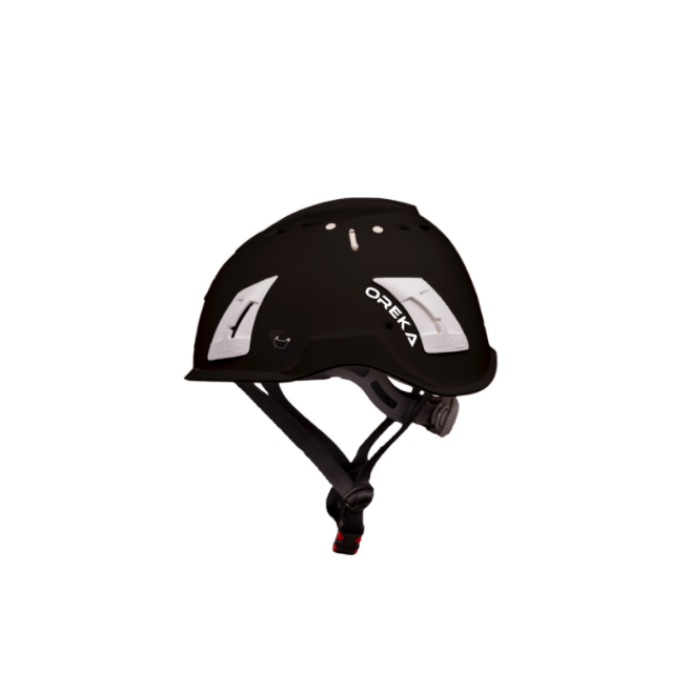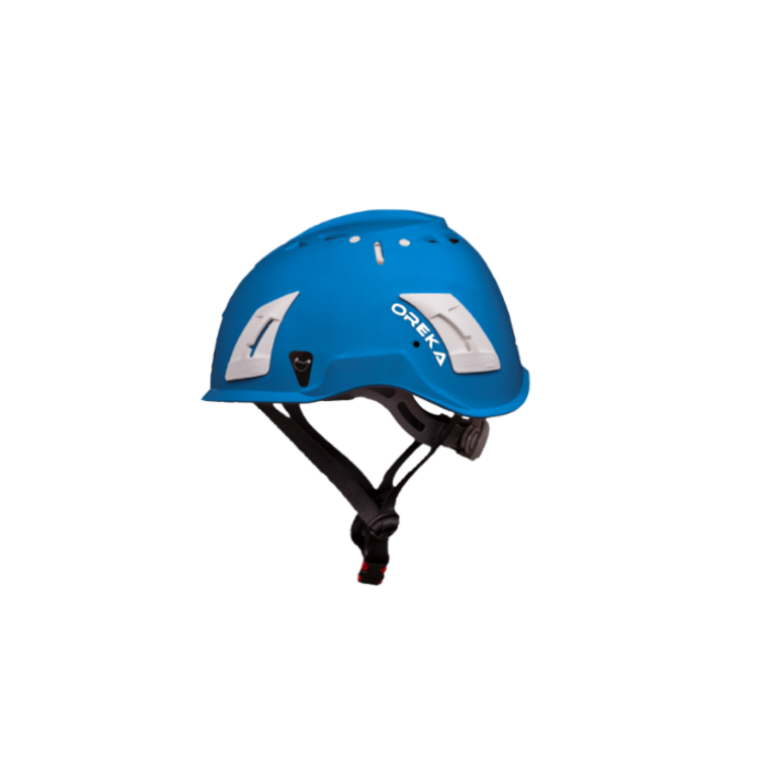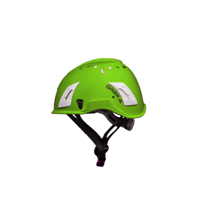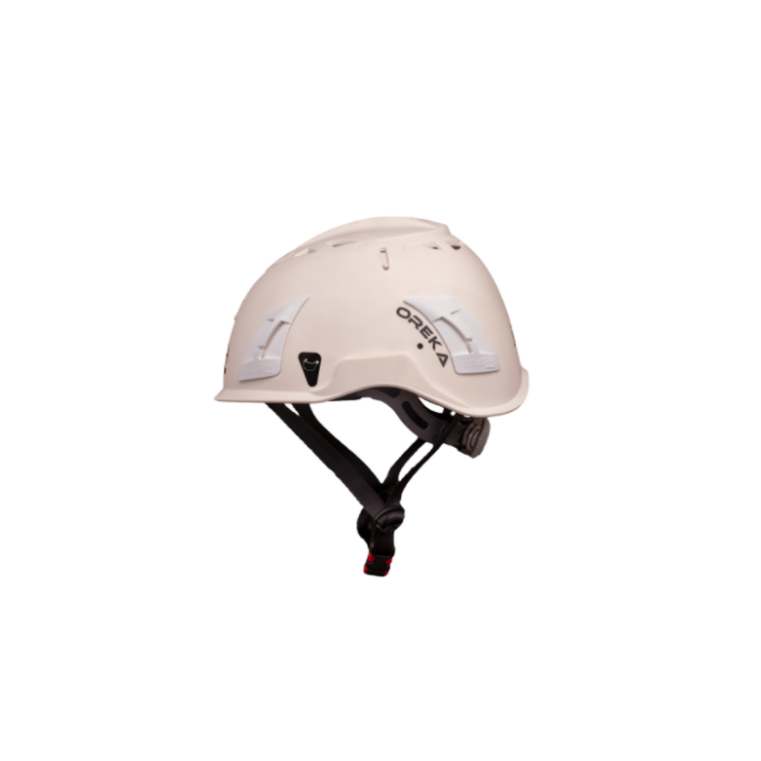 Descrizione: Casco per lavori in quota polivalente e dal design sportivo. Offre un comfort assoluto grazie a bardatura interna a sei punti, cinque supporti portalampada e fissaggio con fibbia per una regolazione semplice, rapida ed efficiente che ne assicura una tenuta eccellente. Il casco Oreka si caratterizza per una grande versatilità, infatti può essere utilizzato anche con visiera o schermo facciale e protezione uditiva (innesti universali da 30mm). Include fori di ventilazione con meccanismo scorrevole che consente all’utilizzatore di chiuderli e aprirli. Calotta esterna in ABS.