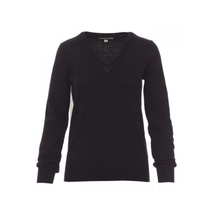 Descrizione: Maglioncino donna collo a V, collo, polsi e bordi inferiori a costine fini, lavorazione rasato fine e confezione a maglia calata senza cuciture.