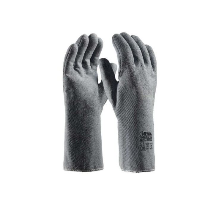 Descrizione: Guanto anticalore per operare a contatto (250°C>15”) con materiali come vetro, stampi, laminati e gomma e per la movimentazione di supporti per prodotti da forno.