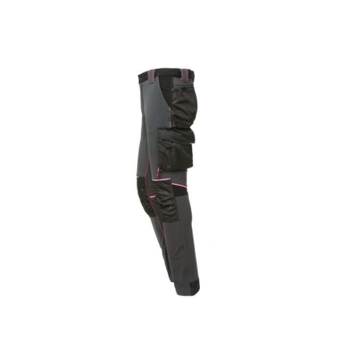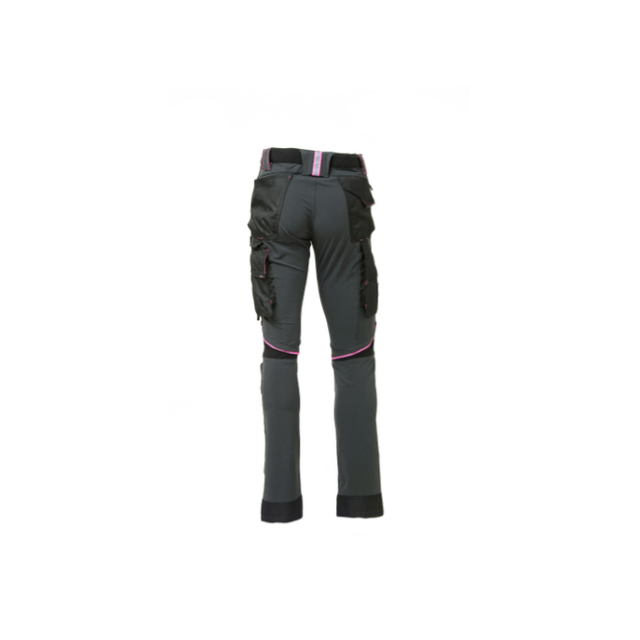 Descrizione: Pantalone Slim Fit in tessuto U-4 (U-Power 4 way stretch) molto comodo, resistente, morbido sulla pelle, idrorepellente, traspirante e asciuga rapidamente. Dotato di due ampie tasche anteriori, elastico in vita con un sistema innovativo di regolazione a scomparsa. Carrè posteriore accentuato per una maggior protezione della parte lombare e nastro rosso/reflex su passante tubolare posteriore. Tasca laterale porta utensili, multifunzionale con porta badge a scomparsa, due tasche posteriori di cui una con pattina e una con chiusura di sicurezza a velcro. Due tasche, chiuse con zip in corrispondenza del tascone laterale e della tasca frontale destra. Triple cuciture. Bottone antigraffio, zip YKK.