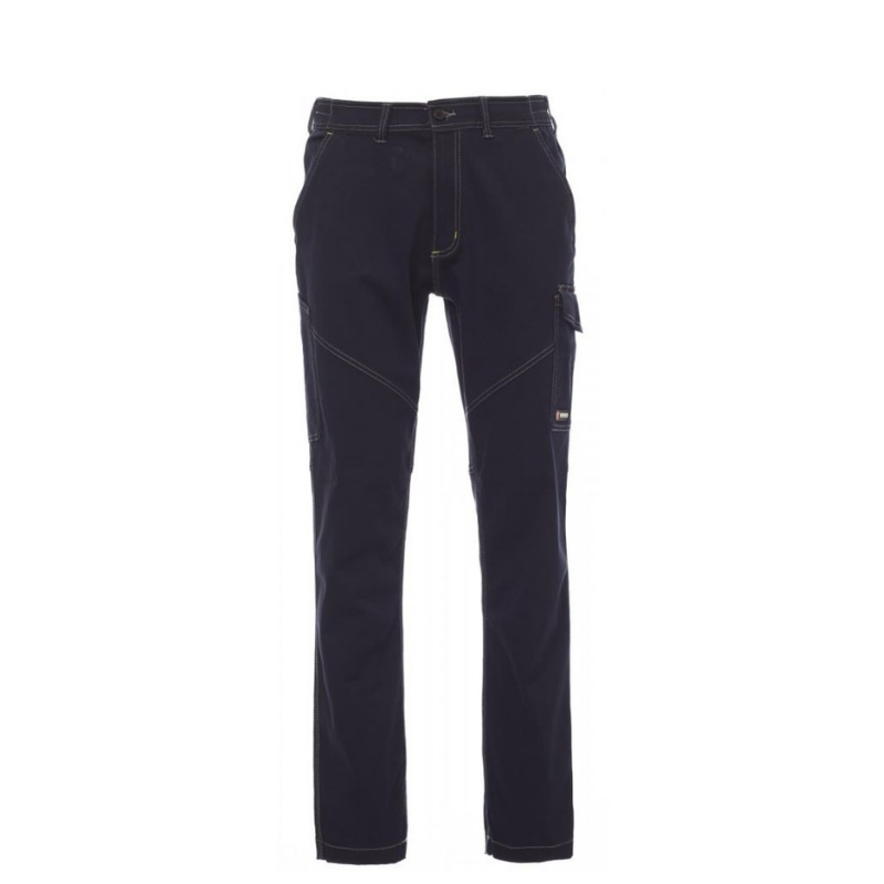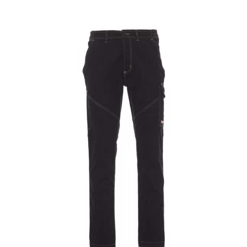 Descrizione: Pantalone stretch unisex, multi stagione con: elastici laterali e passanti in vita, chiusura con zip e bottone in plastica, due tasche anteriori a taglio classico, una tasca laterale Lock System, un porta metro, due tasche posteriori una aperta e una con patta e velcro, cuciture cavallo e interno gamba a triplo ago. Inserti ed impunture a contrasto, bande reflex su tasca posteriore, cuciture triple.