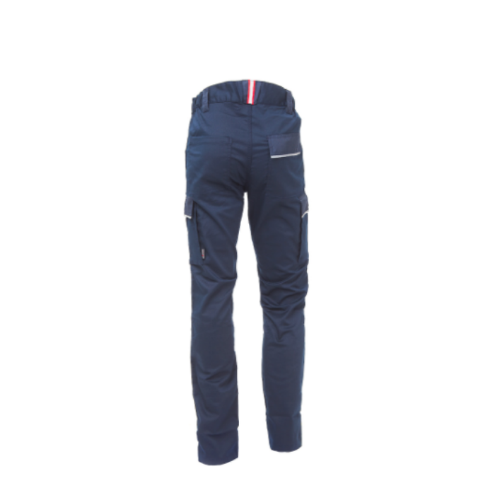 Descrizione: Pantalone, Slim Fit, cargo in TC stretch dotato di: due ampie tasche multifunzionali laterali, 2 tasche anteriori, 2 tasche posteriori di cui una con pattina e una con chiusura di sicurezza a velcro. Presenta inoltre un rinforzo in poly-oxford su tasche laterali, elastico in vita e profili reflex su pattina tasche laterali e pattina tasca posteriore. Carré posteriore accentuato per una maggior protezione della parte lombare. Ginocchia pre-formate per un maggior comfort, nastro rosso/reflex su passante tubolare posteriore, triple cuciture e chiusura centrale con zip e bottone antigraffio. Pantalone da: Agricoltori, Installatori, Magazzinieri, Muratore.