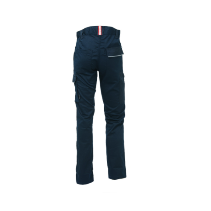 Descrizione: Pantalone, Slim Fit, cargo in TC stretch dotato di: ampia tasca laterale multifunzionale, tasca porta metro, 2 tasche anteriori, 2 tasche posteriori di cui una con pattina e una con chiusura di sicurezza a velcro. Presenta inoltre: tasche porta ginocchiere in resistente poly-oxford, elastico in vita, profili reflex su pattina tasca laterale e pattina tasca posteriore. Carré posteriore accentuato per una maggior protezione della parte lombare. Nastro rosso/reflex su passante tubolare posteriore, triple cuciture, chiusura centrale con zip.