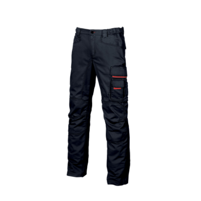 Descrizione: Pantalone da lavoro dotato di: 2 ampie tasche anteriori, tasca laterale portautensili, tasca laterale multifunzionale portabadge, 2 tasche posteriori con chiusura di sicurezza a velcro, porta martello regolabile e regolazione in vita con elastico per massimo comfort. Presenta inoltre i supporti di rinforzo per velcri, triple cuciture, struttura al cavallo rinforzata e morbide toppe di rinforzo sulle ginocchia. Bottone antigraffio. Pantalone adatto per: Agricoltori, Autotrasportatori, Carpentieri, Elettricisti, Idraulici, Imprese di pulizia, Installatori, Magazzinieri, Meccanici, Muratori.