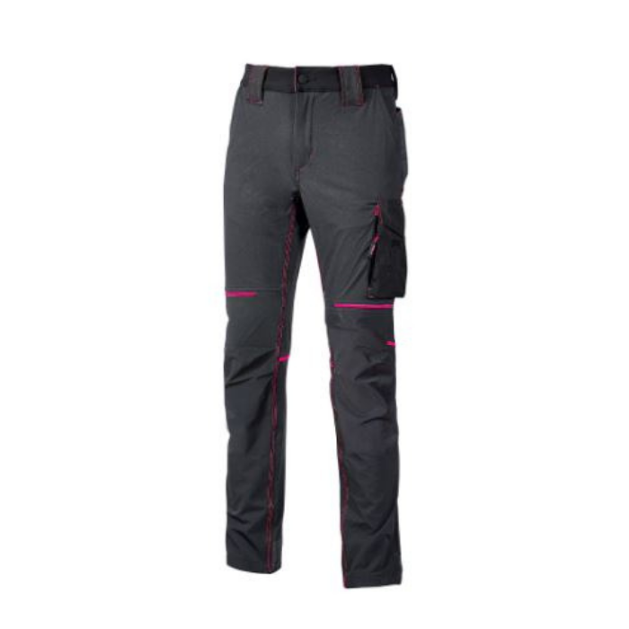 Descrizione: Pantalone Slim Fit in tessuto U-4 (U-Power 4 way stretch) molto comodo, resistente, morbido sulla pelle, idrorepellente, traspirante e asciuga rapidamente. Dotato di due ampie tasche anteriori, elastico in vita con un sistema innovativo di regolazione a scomparsa. Carrè posteriore accentuato per una maggior protezione della parte lombare e nastro reflex su passante tubolare posteriore. Tasca laterale porta utensili, multifunzionale con porta badge a scomparsa, due tasche posteriori di cui una con pattina e una con chiusura di sicurezza a velcro, battitacco in resistente polyoxford 600D. Due tasche, chiuse con zip in corrispondenza del tascone laterale e della tasca frontale destra. Triple cuciture, bottone antigraffio, zip YKK.