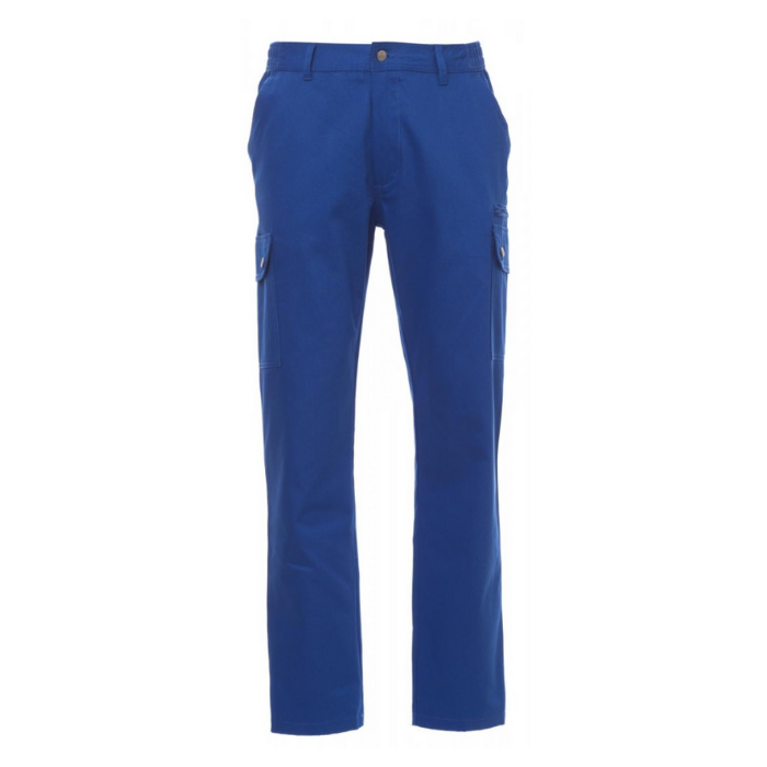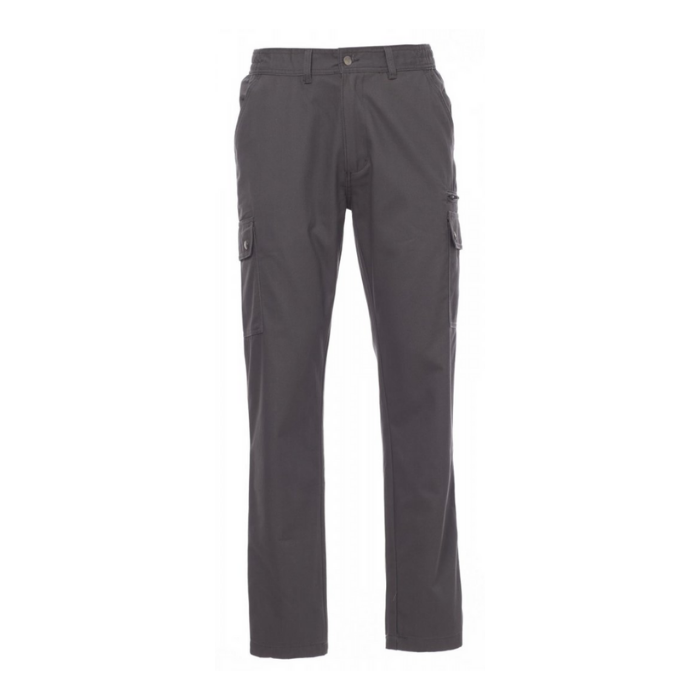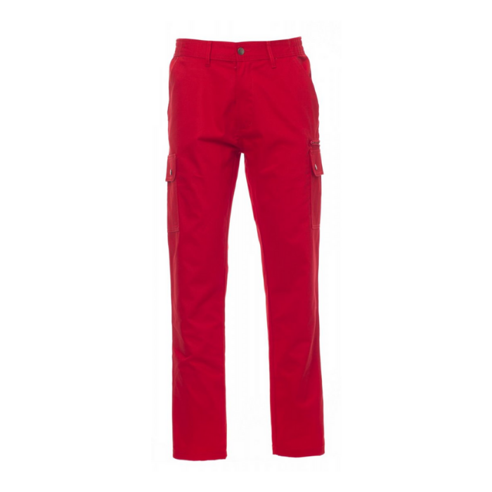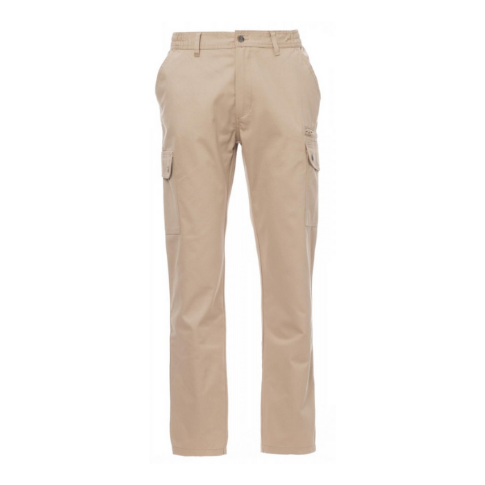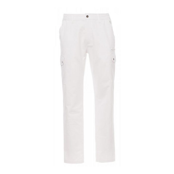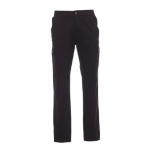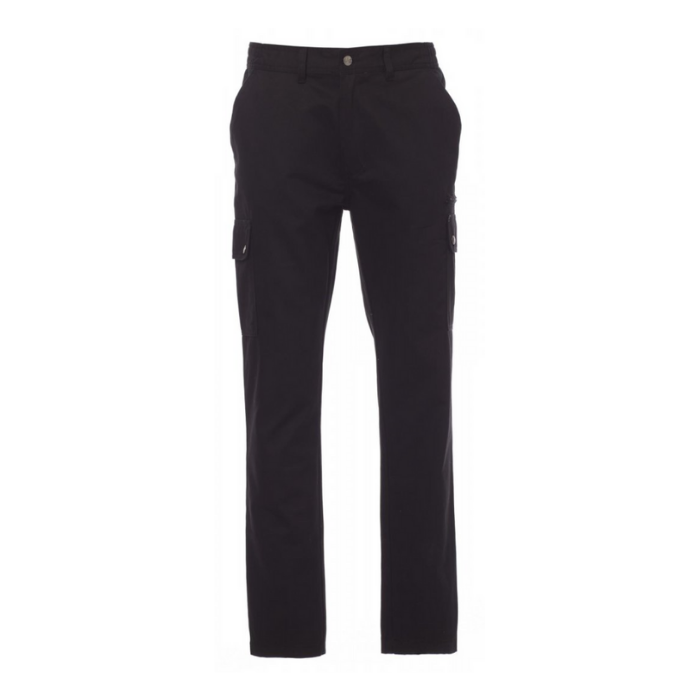Descrizione: Pantalone uomo, multistagione, elastici laterali e passanti in vita, chiusura con zip e bottone in metallo, due tasche anteriori a taglio classico, due tasche laterali con patta e bottoni automatici, una tasca con zip lato sinistro, un portametro a scomparsa lato destro, due tasche posteriori a filo con asola e bottone.