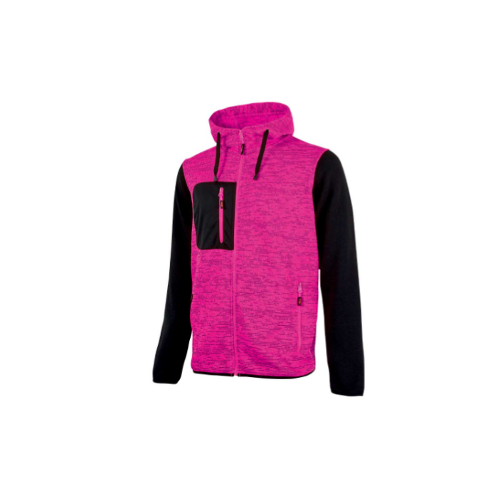 Descrizione: Felpa full-zip con interno in morbido pile. Il capo è composto da: colletto alto, chiusura centrale con zip, polsi e fondo in tessuto elasticizzato e cappuccio fisso regolabile. Presenta inoltre due tasche frontali e una tasca sul petto chiuse con zip. Logo U-Power “testa di leone” tono su tono applicato su braccio destro.