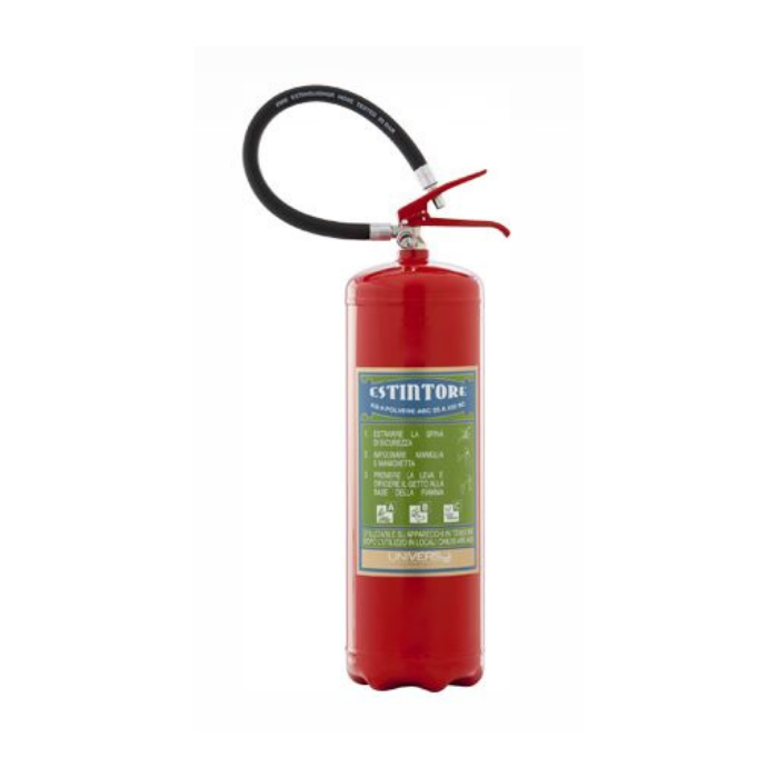 Descrizione: L’estintore a polvere kg.9 modello “UNIVERSO 9”; La linea Universo è il classico del Made in Italy ma con una nota di colore per richiamare l’attenzione al rispetto dell’ambiente.
