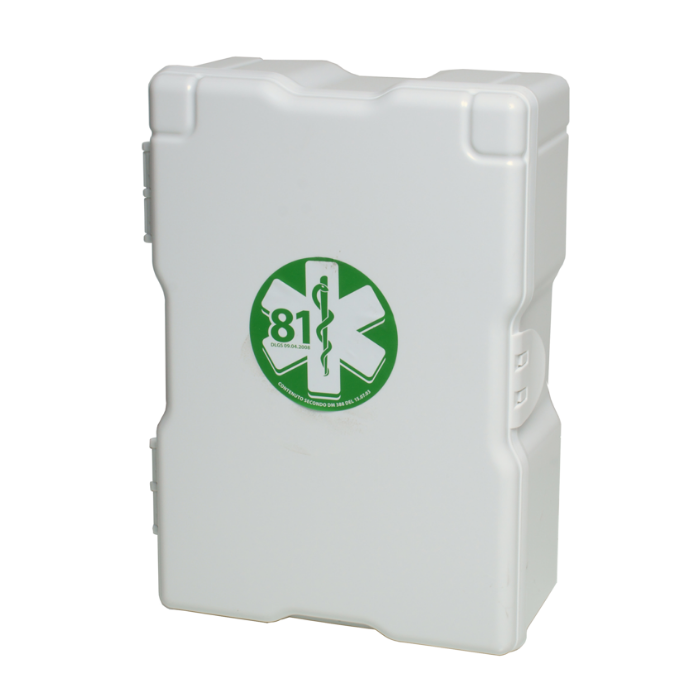 Descrizione: Armadietto pronto soccorso per aziende o unità produttive con meno di tre lavoratori che non rientrano nel gruppo A in RC colore bianco, 2 vani, 1 ripiano amovibile ,chiusura a scatto.
