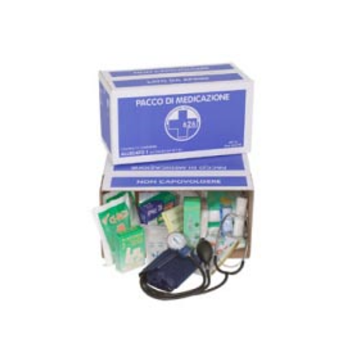 Descrizione: Pacco reintegro, da 3 lavoratori, per tutti gli armadietti e le valigette allegato 1 con contenuto maggiorato a norma del DM 388 del 15.07.2003 e D.L. 81 del 09/04/08 art.45.