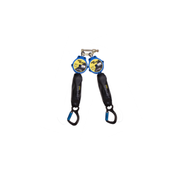 Descrizione: Dispositivo anticaduta retrattile composto da due Miniblok C con fettuccia di 2m di lunghezza. Facile da utilizzare, fornisce all’utilizzatore i metri di fettuccia necessari per il suo lavoro, rimanendo sempre in tensione ed evitando ogni eventuale caduta. Dispone di meccanismo di frenata meccanico per frenare in maniera rapida e sicura. In caso di caduta, il dispositivo riduce la forza d’impatto trasmessa all’utilizzatore al di sotto dei 6 kN. Certificato per lavori su piano orizzontale con possibilità di caduta verticale su angolo vivo in conformità alla norma RFU/VG 11.060 (max 100Kg) e per l’ancoraggio al suolo (Fattore 2).