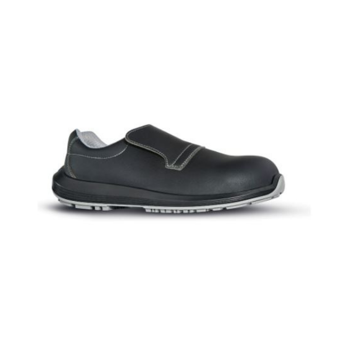 Scarpe antinfortunistiche basse totalmente “no metal”, comode e leggere u power della linea White68&Black, con tomaia New Safety Dry microfibra idrorepellente e traspirante, resistenti a batteri e residui organici chimici, facilmente lavabili, puntale AirToe Composite, antiscivolo e suola PU/PU, S2 FO SR.