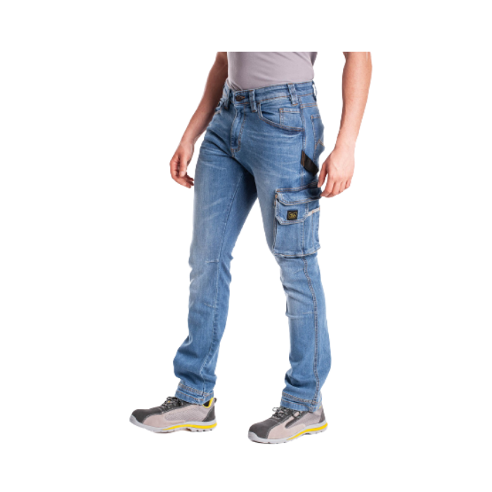 Descrizione: Jeans in comodo e resistente denim elasticizzato Fibreflex dal taglio dritto con passanti XL ultra resistenti. Caratterizzato da: cuciture rinforzate per una solidità impeccabile, tasca laterale con graffio per laptop o altri strumenti, tasca per metro o cinturino per attrezzi, vita alta, doppia cintura interna con elastico “antiscivolo”, patta con zip, comoda coscia con tasca per cellulare, gamba dritta con clip per ginocchio.
