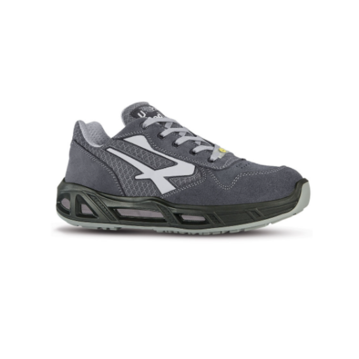 Scarpe antinfortunistiche basse, leggere e comode u power della linea Red Carpet, con tomaia in nylon ultra traspiranti e morbida pelle scamosciata, puntale in alluminio, antiperforazione, antiscivolo, ESD S1PS FO SR.