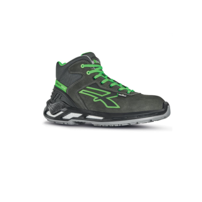 DESCRIZIONE: Scarpe antinfortunistiche alte, leggere e comode U-Power della linea Red 360, con tomaia in pelle nabuk naturale bottalato, idrorepellente e tallonetta anti-shock, puntale in alluminio, antiperforazione, antiscivolo e suola PU/PU infinergy, ESD S3S CI FO SR.
