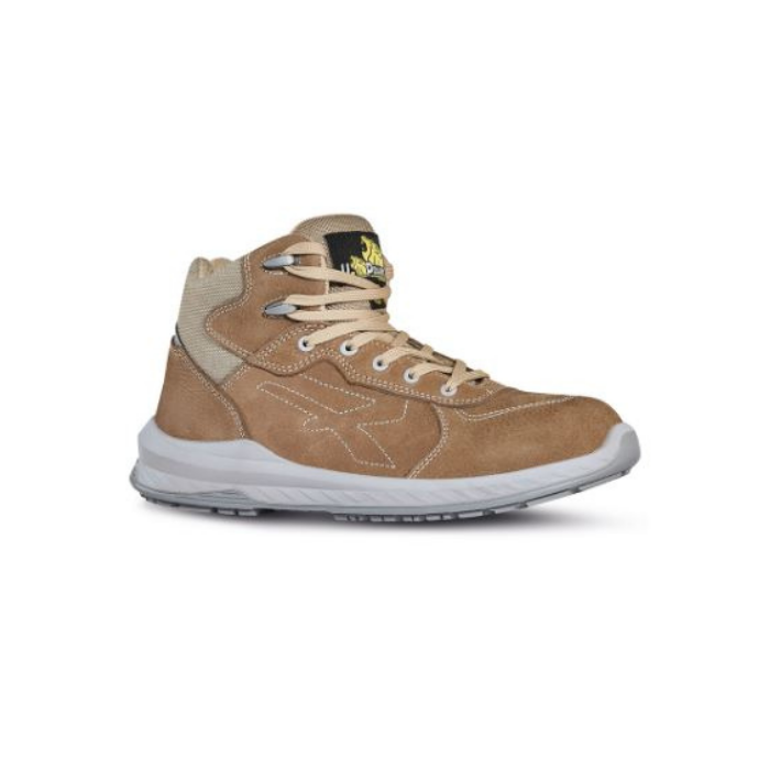 Scarpe antinfortunistiche alte, leggere e comode u power della linea SK GRIP, con tomaia in pelle nabuk naturale, idrorepellente, puntale Composite, antiperforazione, antiscivolo e suola PU/PU U-Grip,ESD S3S CI FO SR.