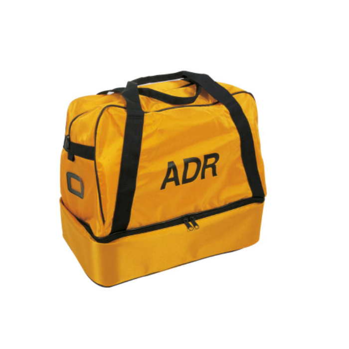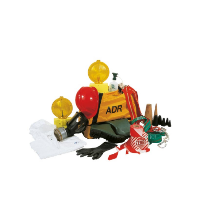 Descrizione: La borsa per ADR contiene: Maschera pieno facciale, Filtro polivalente da 300 cc, Elmetto in polietilene, Completo giacca/pantalone in nylon/PVC, Stivali in PVC, Guanti in neoprene, Occhiali a mascherina, Flacone lava occhi, 2 lampade lampeggianti a batteria, Rotolo nastro bianco/rosso da 200 mt, Badile con manico in legno e pala in alluminio, Telo copri tombino in nitrile.
