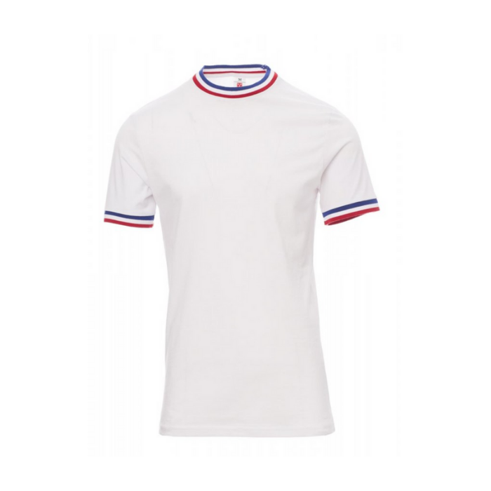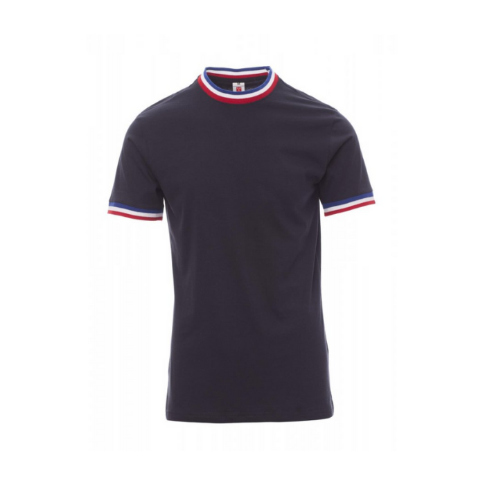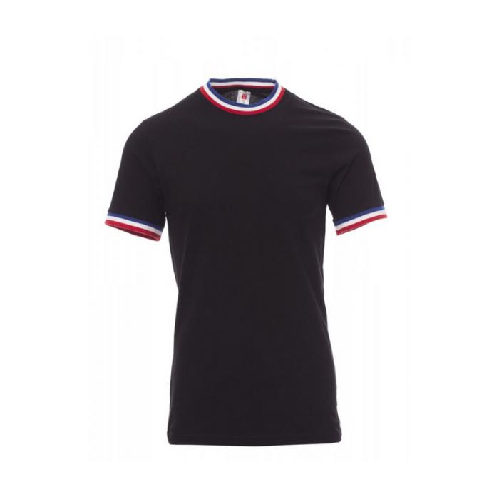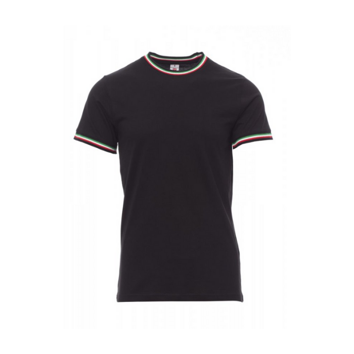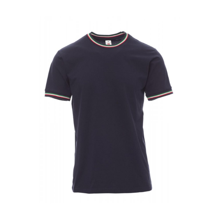 Descrizione: T-shirt a manica corta da uomo con: girocollo, colletto e bordo manica con tricolore a contrasto, colletto in rib misto spandex da 2.3 cm con cucitura ribattuta sul davanti, nastro di rinforzo da spalla a spalla. Cuciture stretch, cucita lateralmente.
