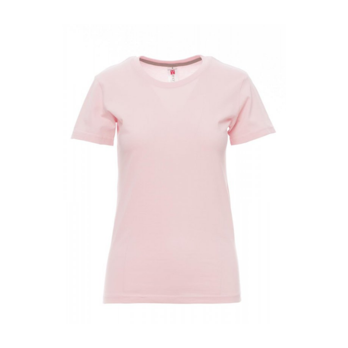 Descrizione: T-shirt da donna con: girocollo, manica corta, sfiancata, colletto in costina misto spandex da 1,5cm con cucitura ribattuta sul davanti, nastro di rinforzo da spalla a spalla in colore a contrasto visibile nel colletto, cuciture stretch, cucita lateralmente.