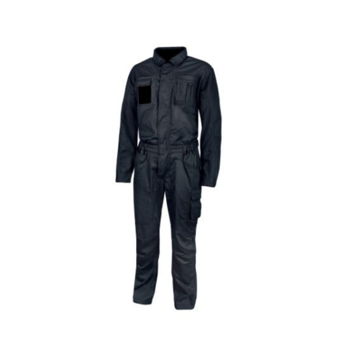 Descrizione: Tuta intera con: chiusura centrale con zip bi-direzionale ricoperta da pattina con velcri, due tasche multifunzionali sul petto e tasca porta cellulare. Presenta inoltre: ampie fasce di aerazione in rete 3D sotto il giromanica, polsini regolabili con bottoni a pressione, morbide toppe di rinforzo sui gomiti e sulle ginocchia, 2 ampie tasche anteriori, tasca laterale portautensili, tasca laterale multifunzionale con porta badge a scomparsa e 2 tasche posteriori con chiusura di sicurezza a velcro. Fettuccia porta martello regolabile e elastico in vita regolabile con velcro, triple cuciture e struttura al cavallo rinforzata.